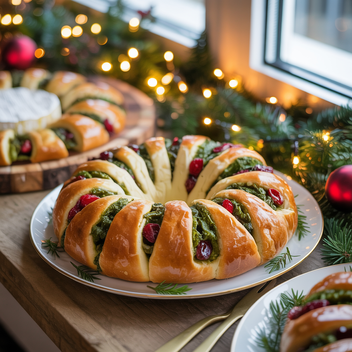 2. Baked Brie Wreath With Cranberries & Pesto Pull-Apart Bread