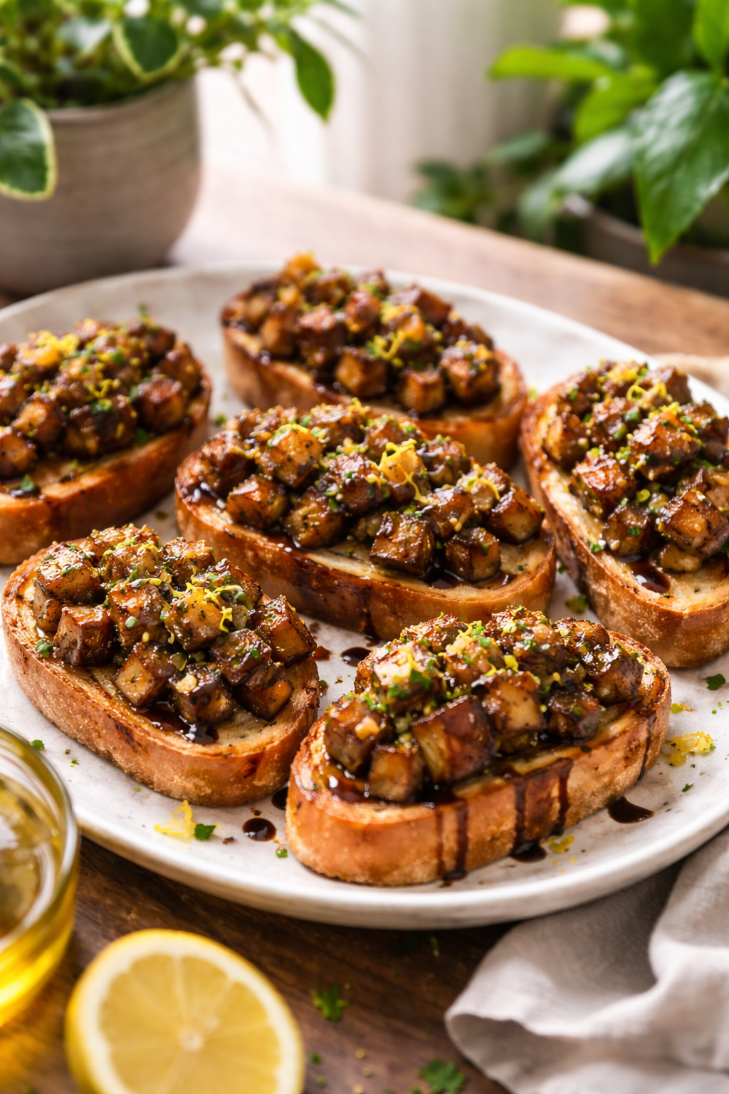 Smoky, jammy eggplant on crisp toast proves you don’t need cheese to feel indulgent. The lemon zest lifts everything so it tastes rich but never heavy.