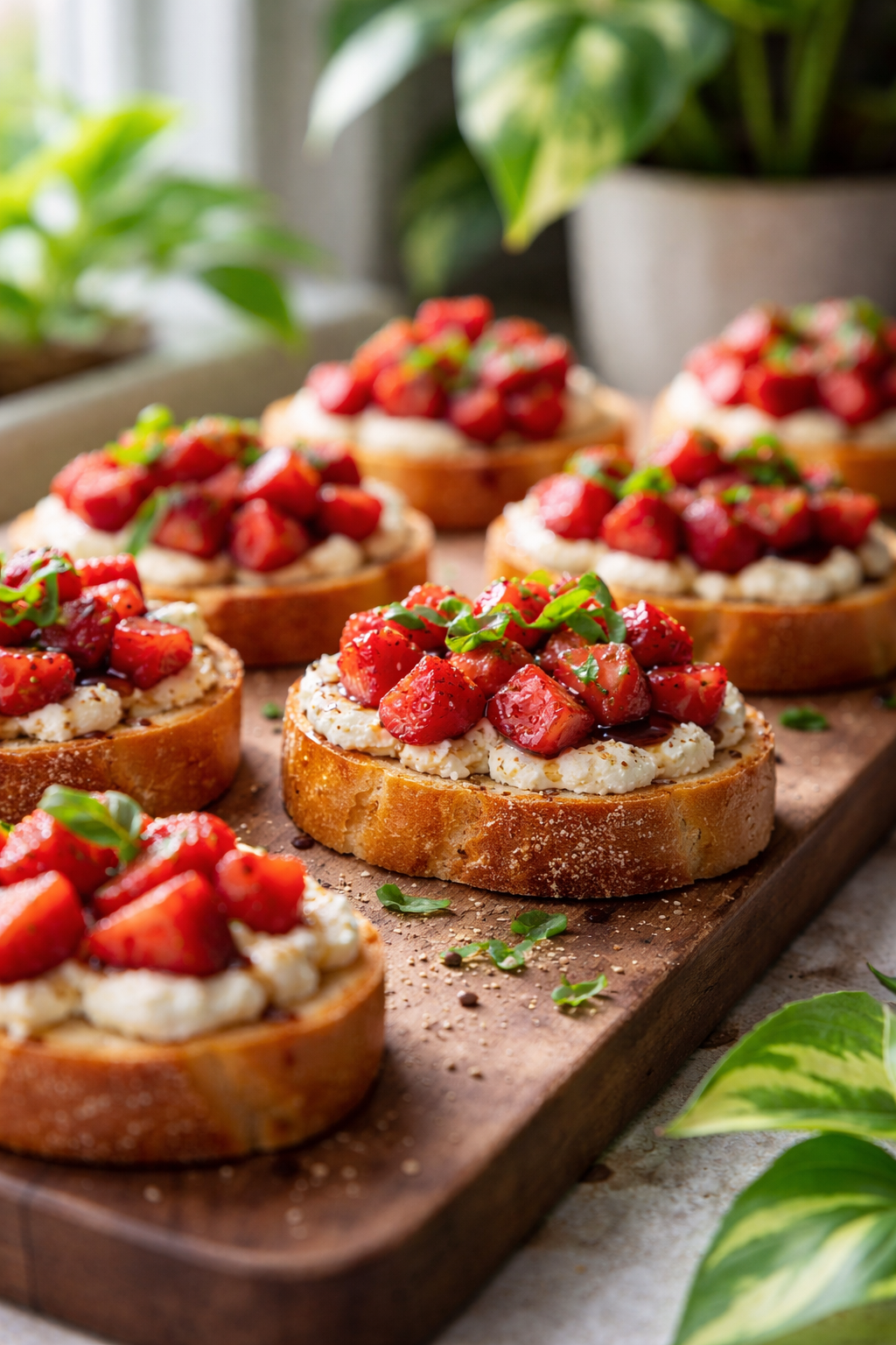 Toss diced strawberries with balsamic, honey, and a pinch of salt and let them sit 5 minutes—just enough to get glossy, not so long they turn watery—then spread ricotta on each toast, spoon strawberries on top, and finish with basil and pepper if you want that “chef did this” look.