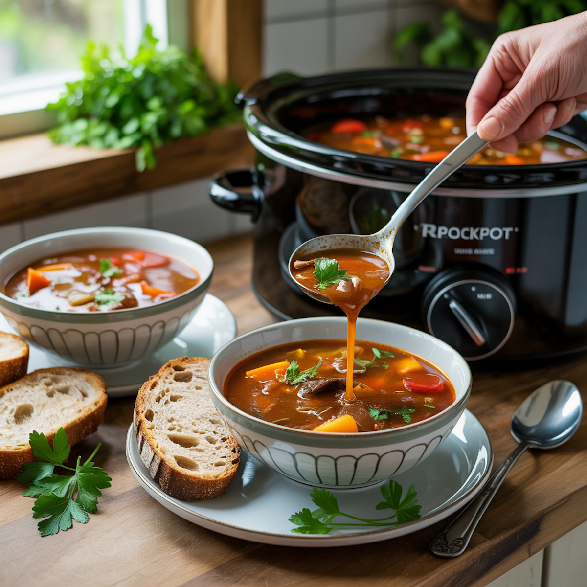 Warm up with this Vegetable Beef Soup Crockpot recipe—tender beef, fresh veggies, and a rich, slow-cooked broth for the ultimate cozy comfort meal!